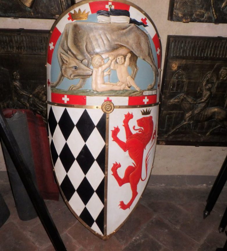 Giulio showed me around the contrada’s church and museum. The museums are interesting places to visit because they house historical costumes, victory banners and other artifacts that tell the story of the contrada. Obviously things weren’t returned yet to their proper places in the museum, for good reason. The flags, the costumes, the shoes, the drums, the coat of arms looked like the backstage area of a Broadway show, everything in its place, ready for the next event. It was a treat to see all of this in its post-victory glory.
