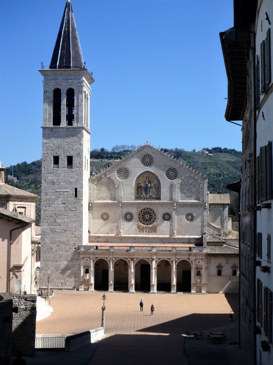 I spent my second day in Umbria in the ancient city of Spoleto, home of the famous “Festival of Two Worlds,” an annual music/arts festival that starts at the end of June and runs 17 days. The festival showcases music, ballet, opera, plays and exhibitions. The final gala concert takes place in the piazza in front of Spoleto’s Duomo. (See photo above)