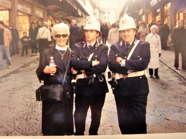 Mom hanging with the carabinieri on the Ponte Vecchio.
