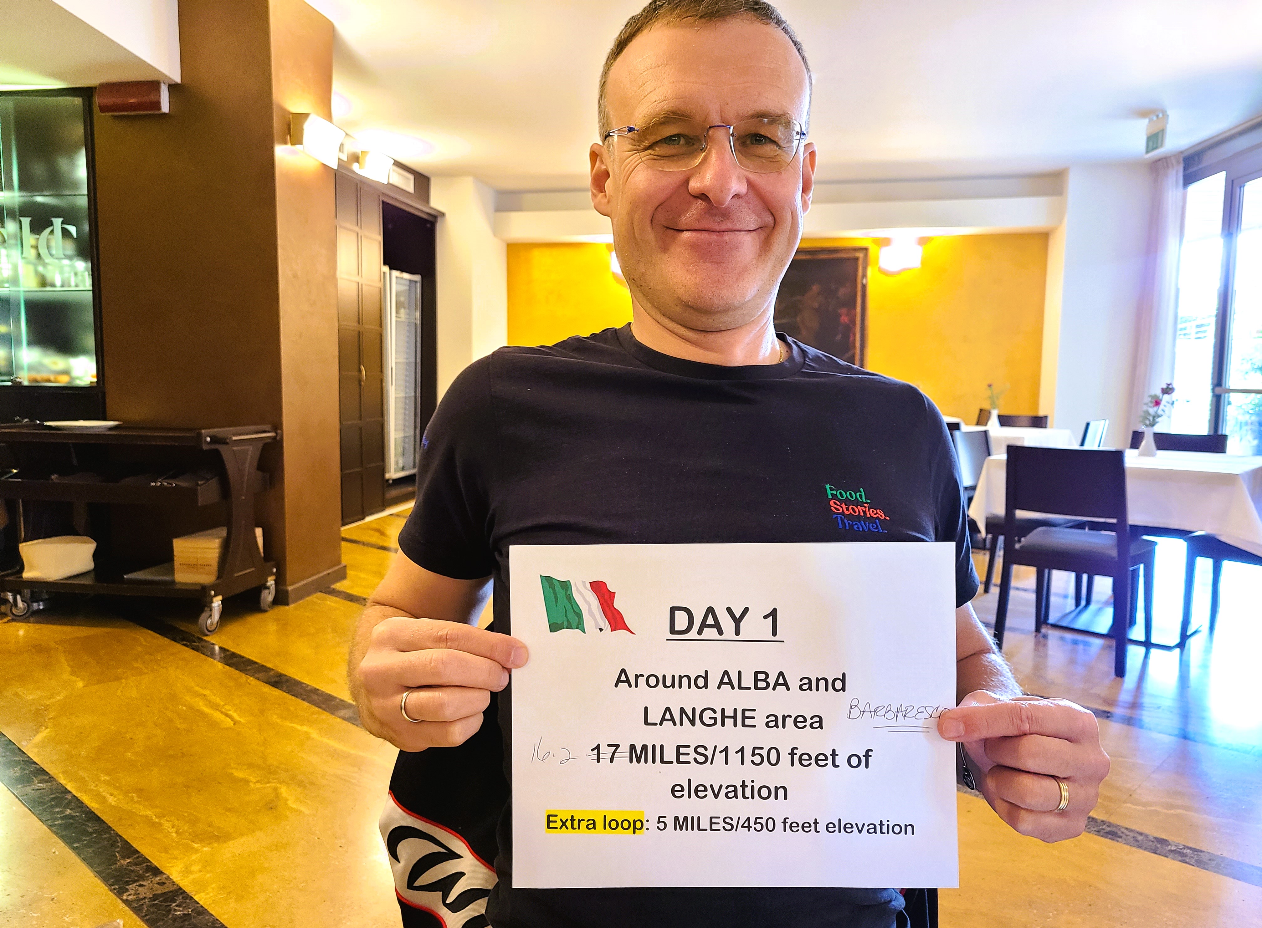 The group met in the hotel restaurant for a big lunch and to learn what adventures lay ahead. Every morning, Cristiano, Gian Luca and Davide reviewed the planned itinerary for that day – the distances, the climb elevations and grades, the rest stops, lunches – and how to get the Garmins going. And remember, this is their home turf, Piedmont. It was pretty great riding around this beautiful region with the home team.