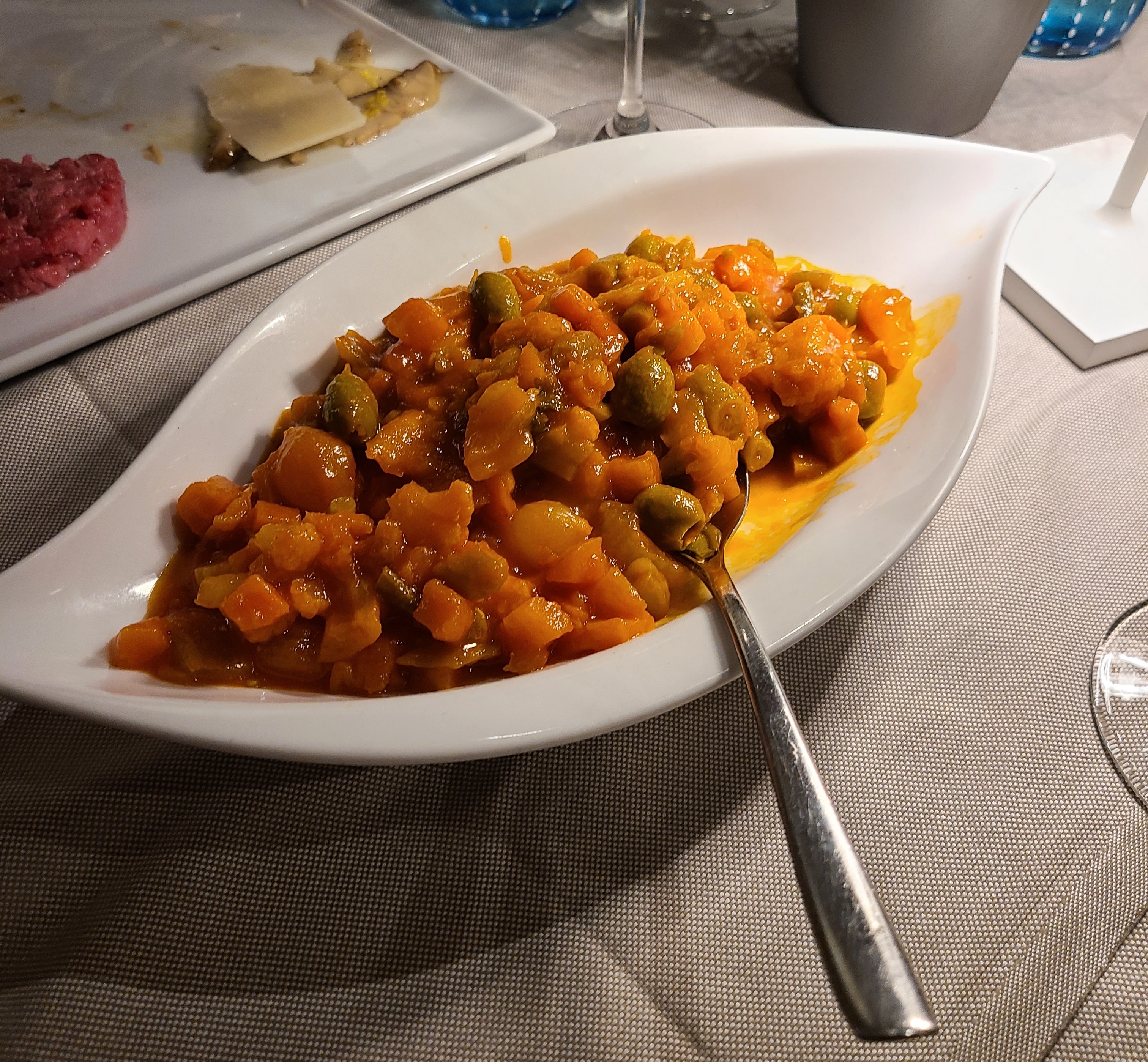 Dinner that night at a restaurant called L’inedito was again a lesson in Piedmontese specialties, starting with vitello tonnato, (veal with tuna sauce) giardiniera, a beef tartare, and porcini mushrooms. A bowl of plin pasta followed.