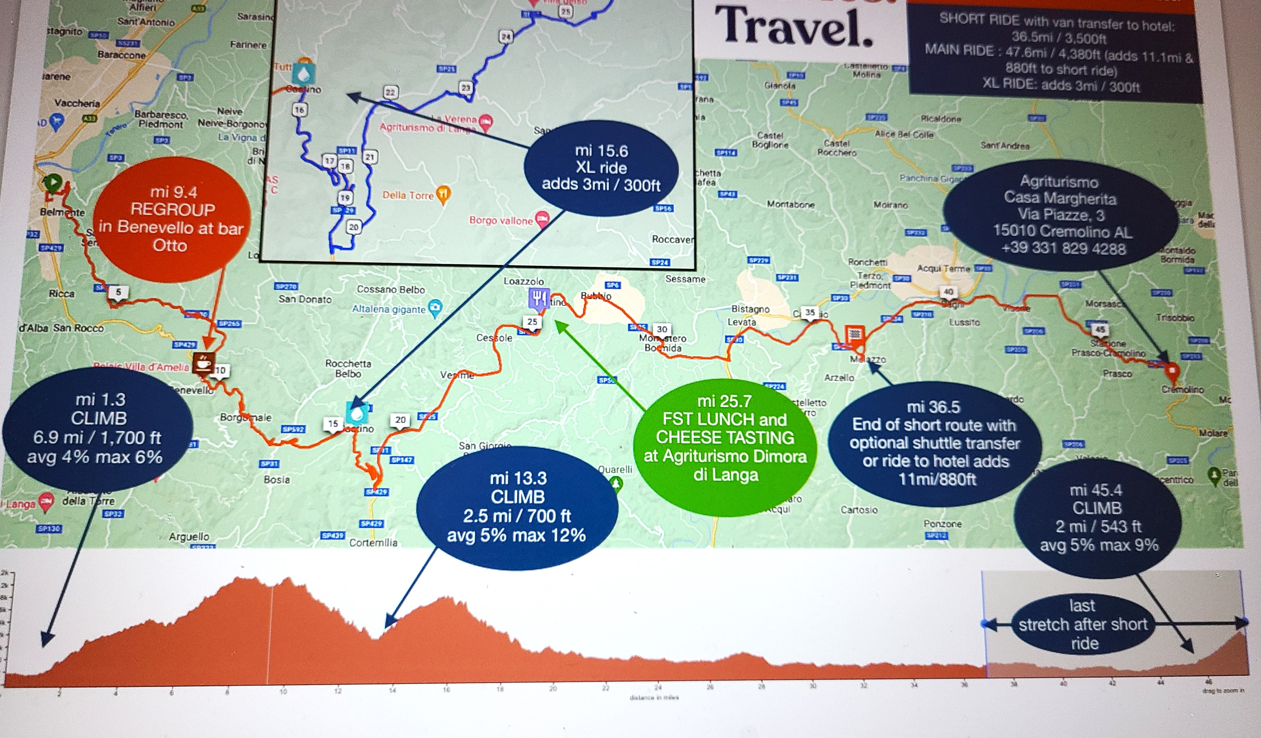 The ride was long because we left Alba and went to our next destination, an agriturismo in the middle of the plush Piemontese countryside. We faced more than a few steep climbs in the first 25 miles.