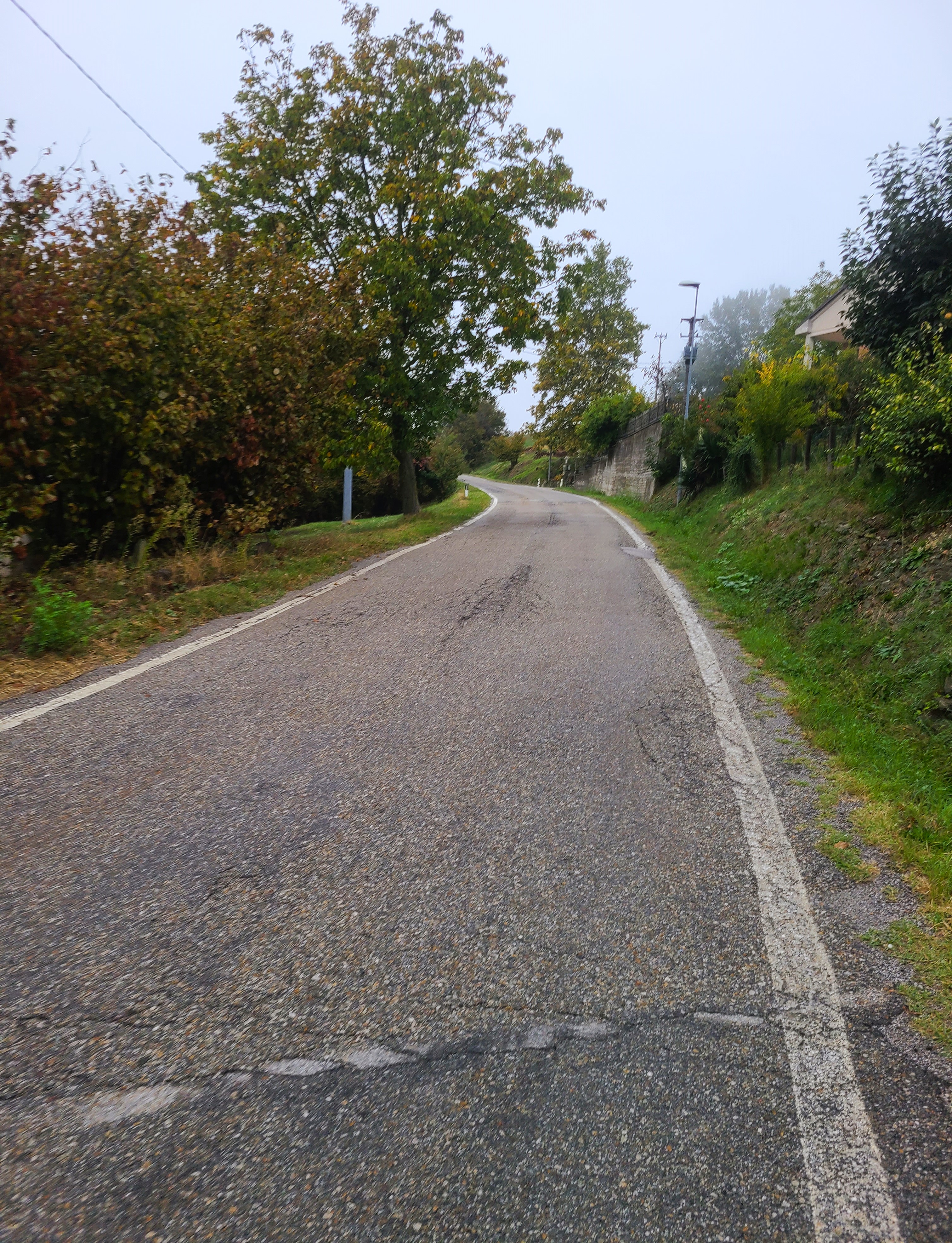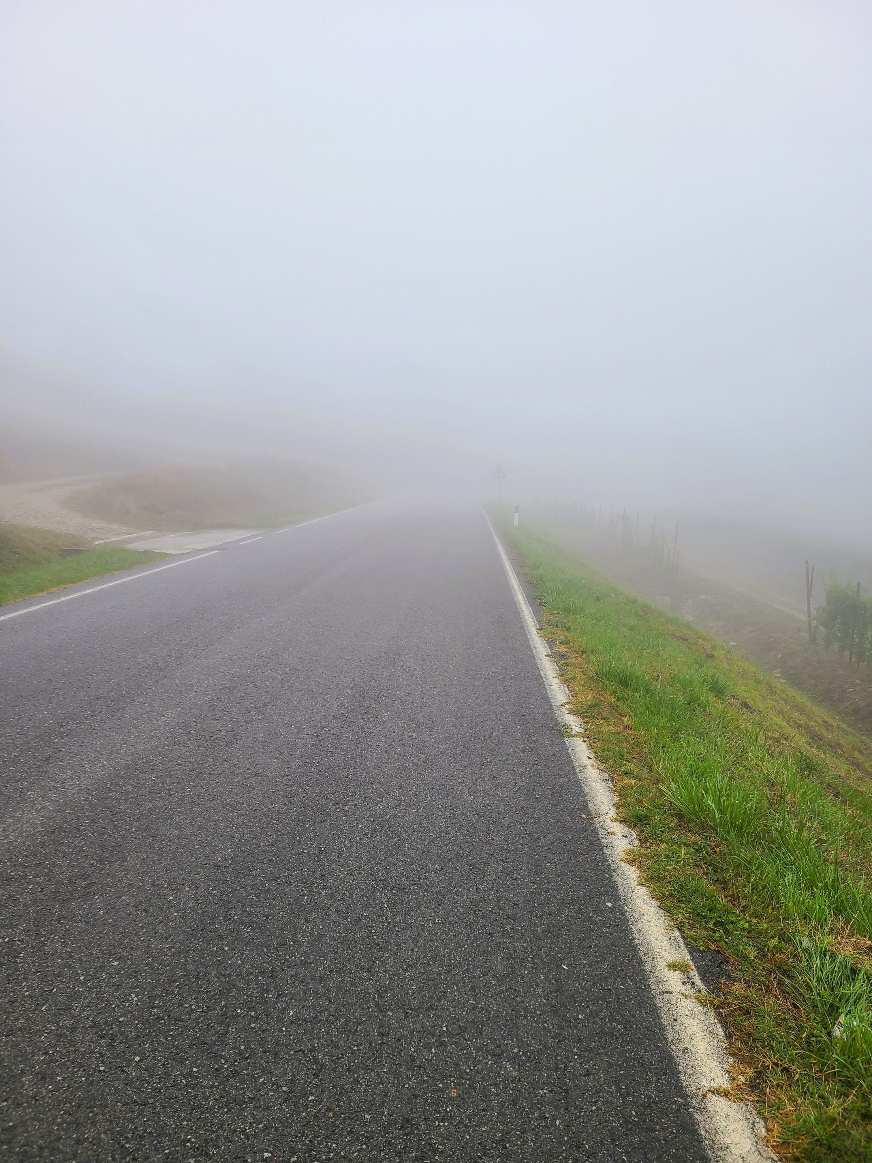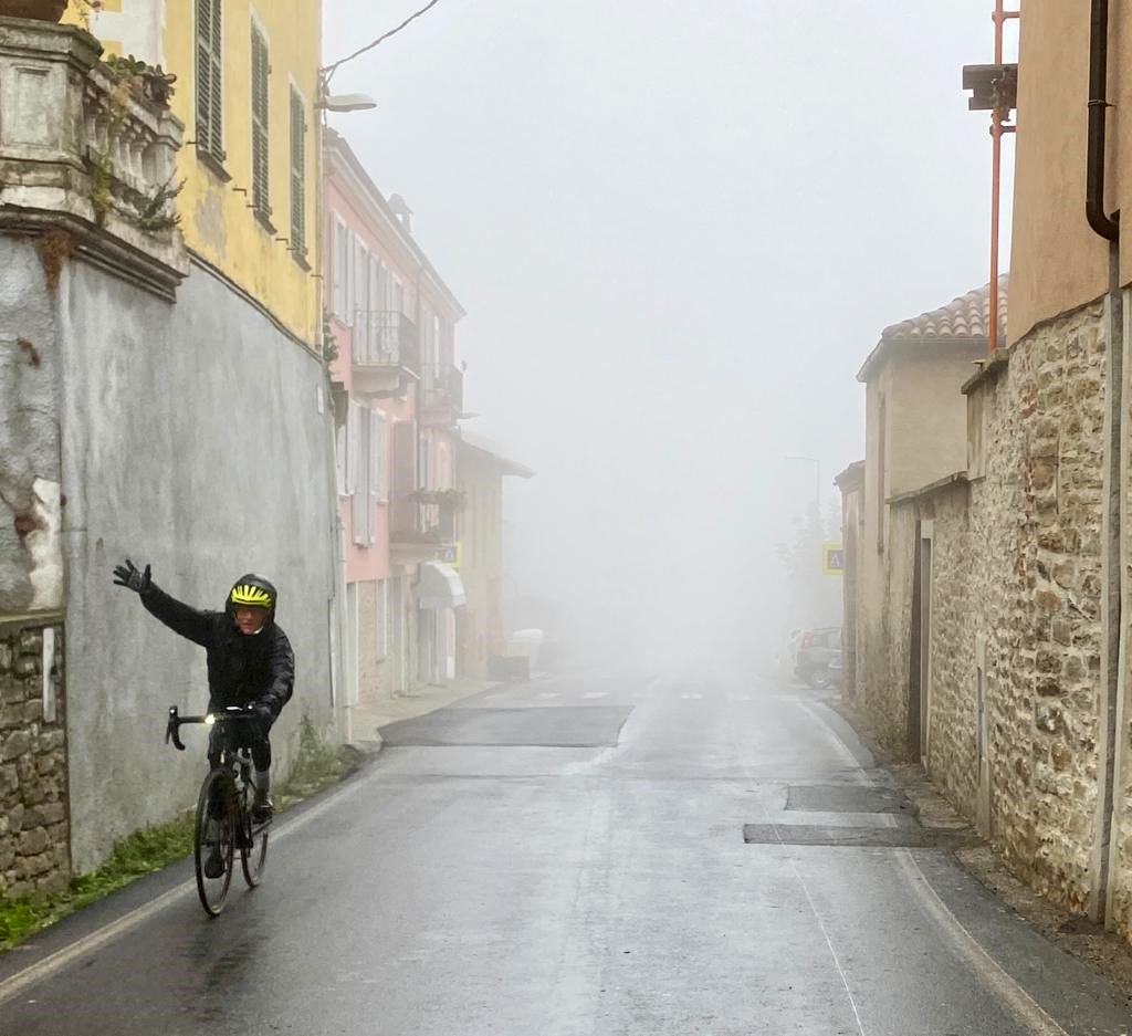 At some point, my jacket, shoes, gloves and shorts were all soaked and I was cold. Then with the higher elevation came the fog. I actually stopped and laughed for a minute, just to take in the whole situation. I was pushing myself beyond anything I’ve ever done before, I had a voice on the GPS app giving me directions from my shorts pocket and the road ahead was shrouded in fog. Andiamo!