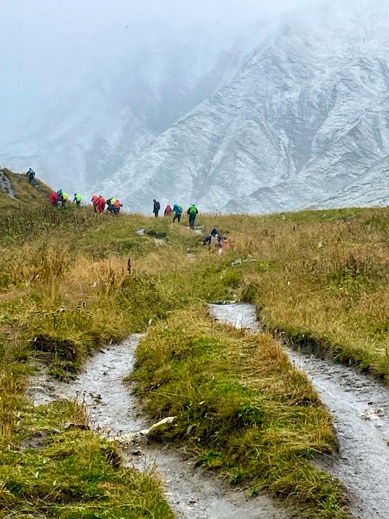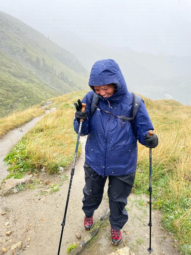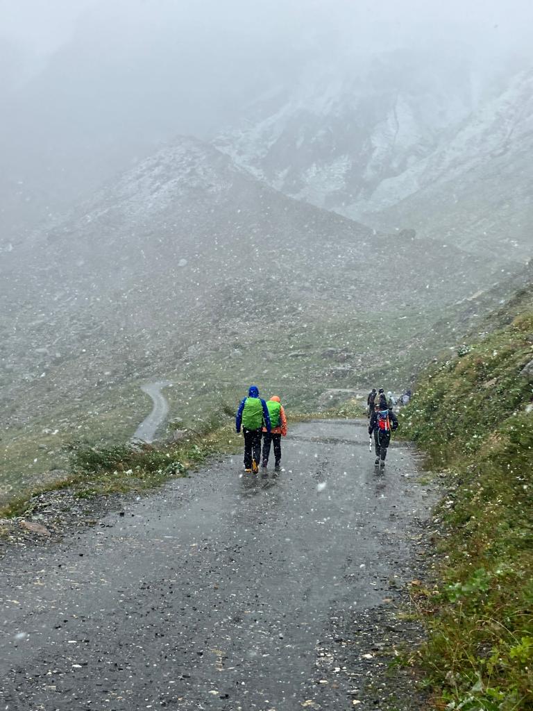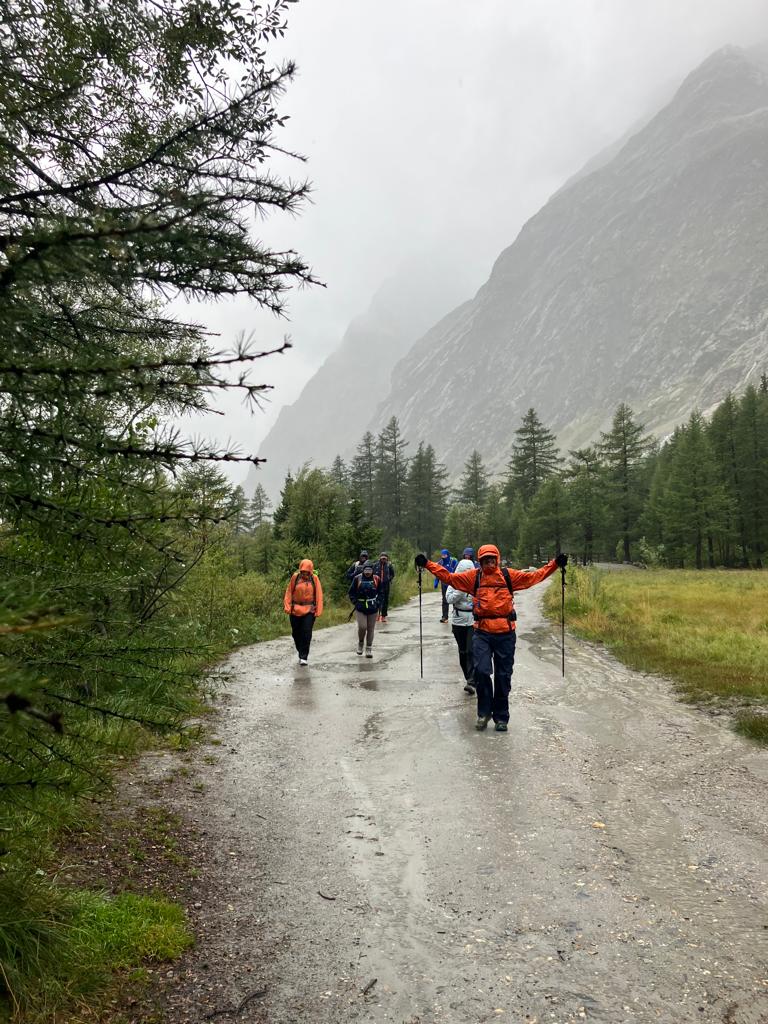 As a group they discussed the situation but there was only one outcome which was to go back to Courmayeur. “We descended from the Rifugio by the vehicle track as the path was too slippery.”
