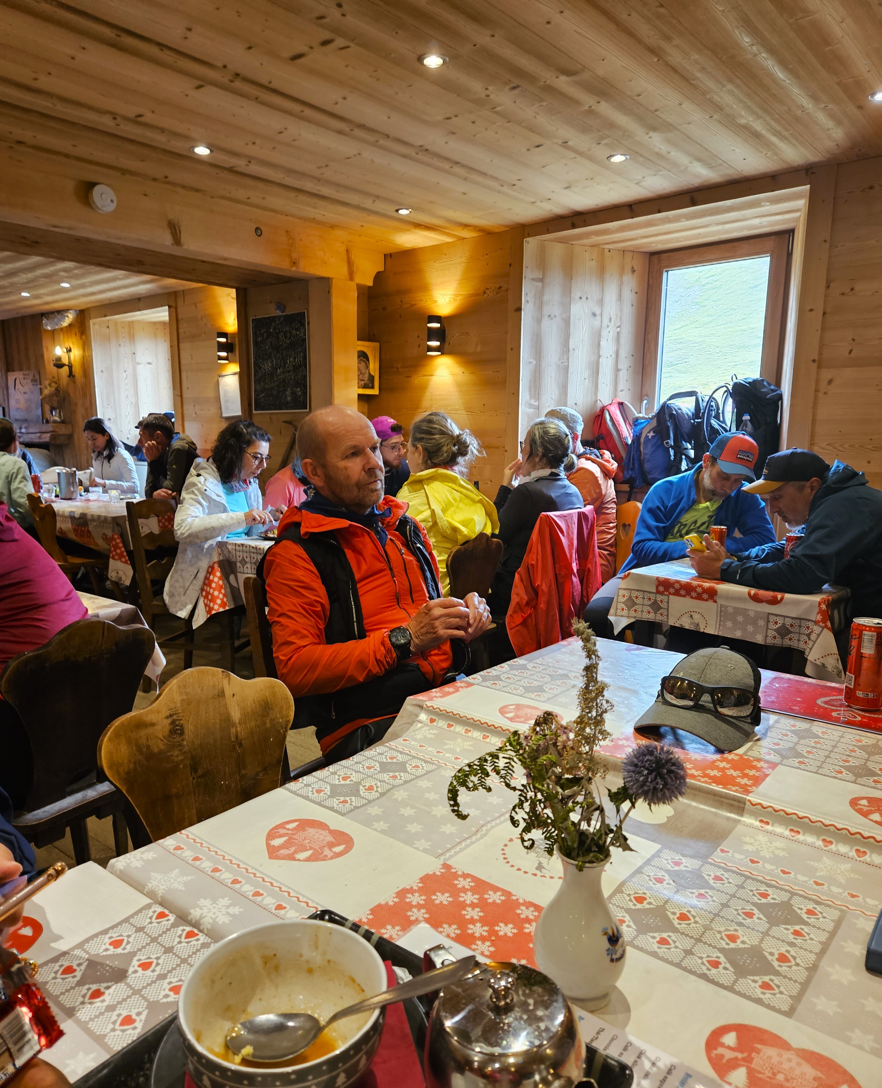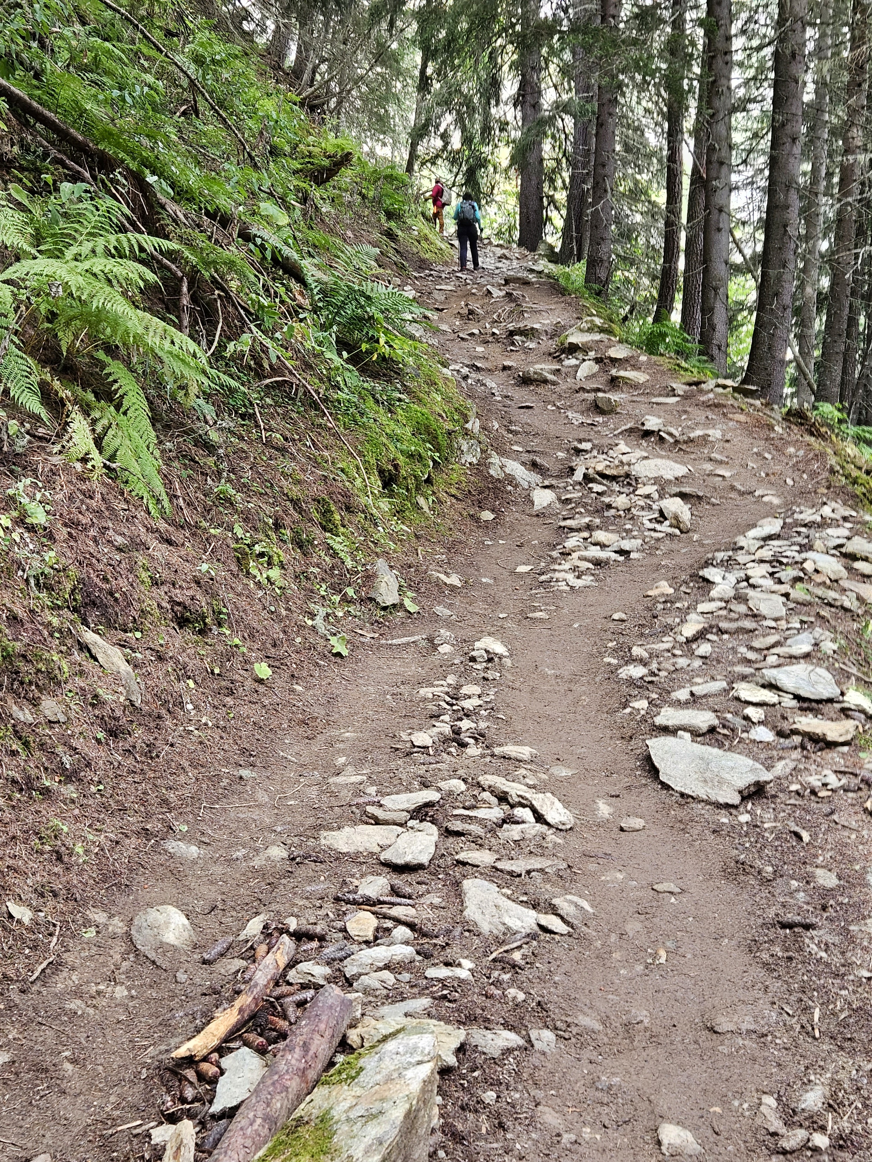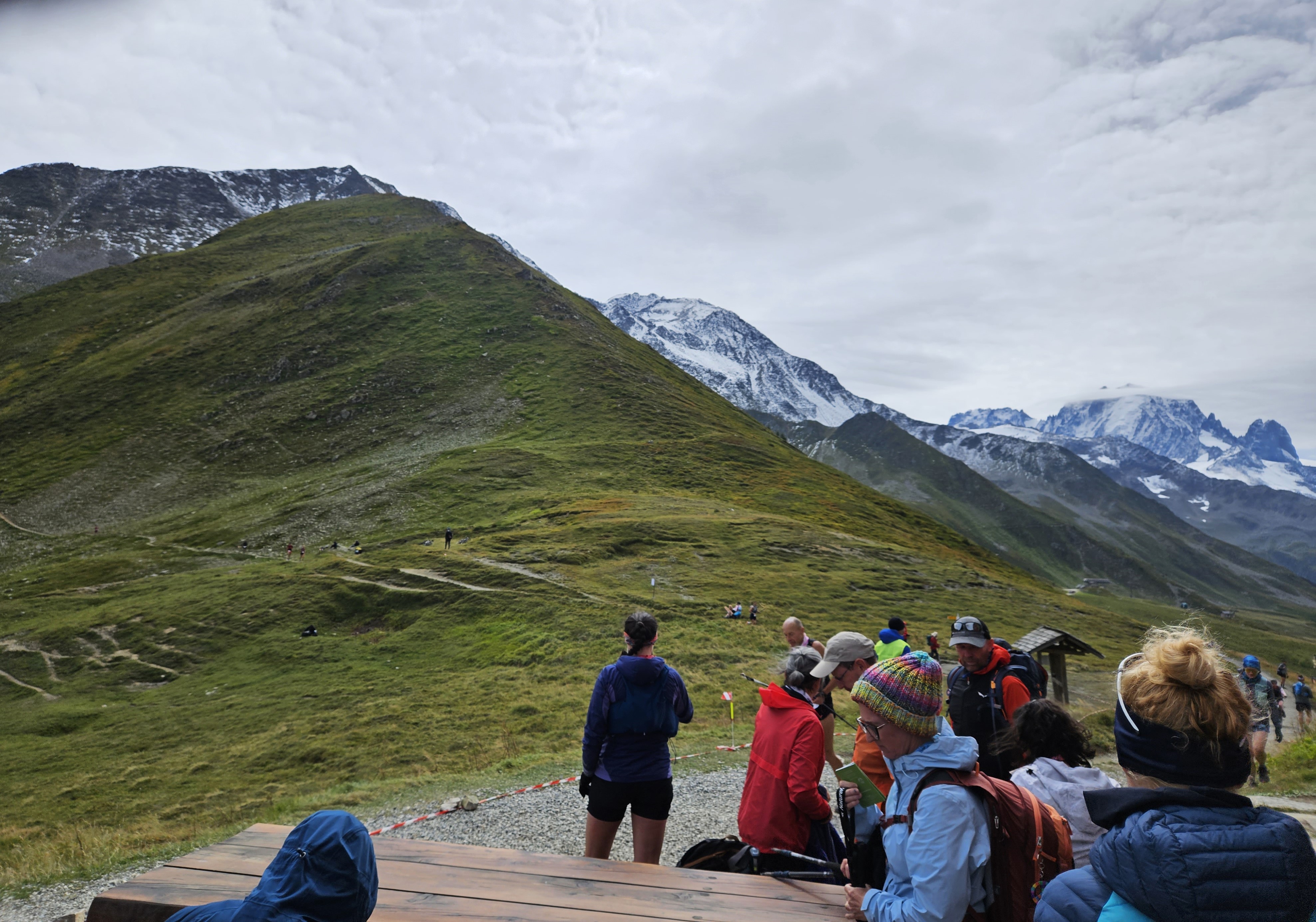 No bikers today on the trails. Instead, runners from the Ultimate Trek Mont Blanc, the absolutely crazy fit people who run these trails, passed us. If they’re in the big race, they’ll go all around Mont Blanc and cover 171K. These are ultramarathoners and they are crazy!