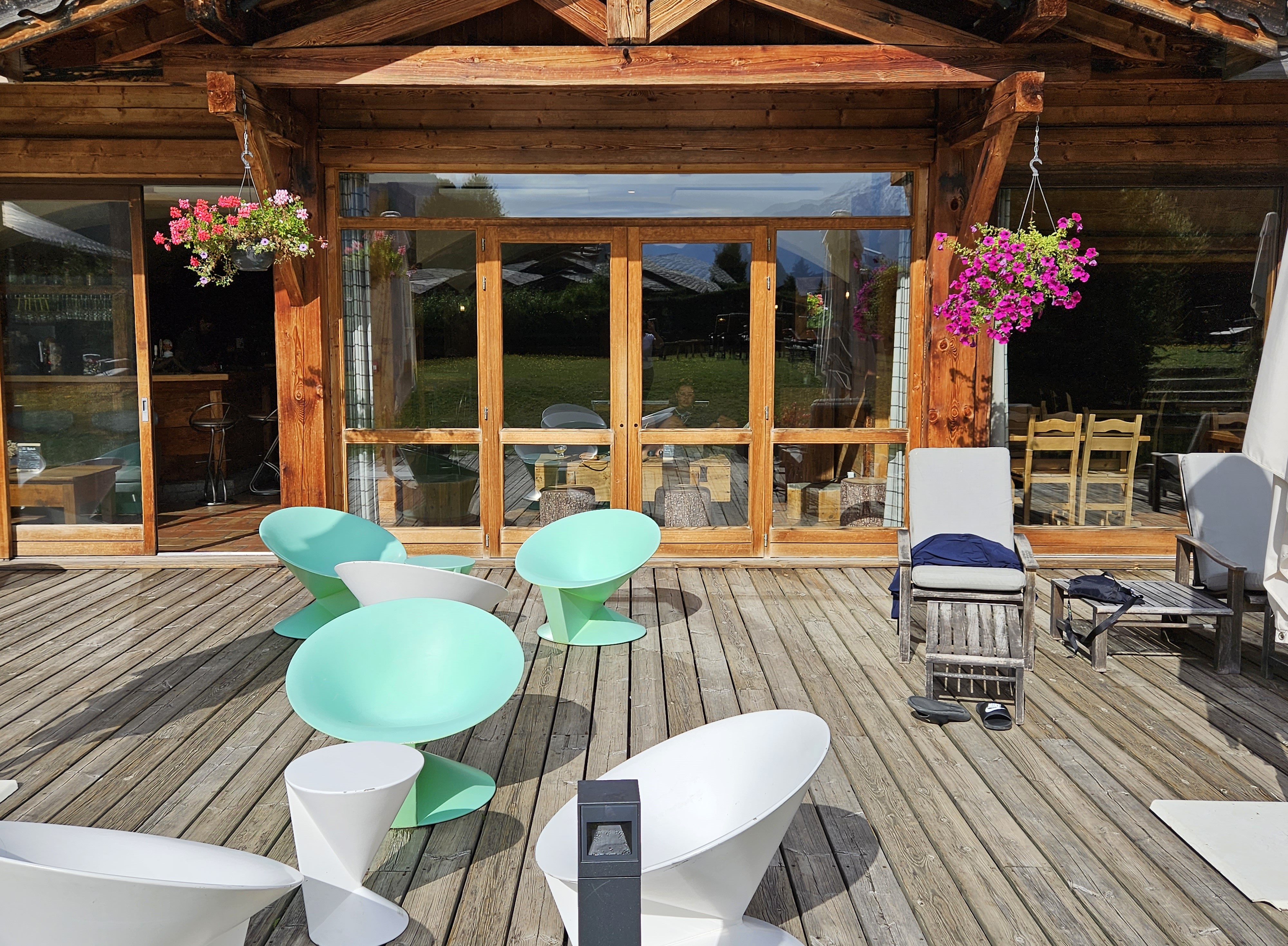 Upon arrival at the hotel, I was struck by the parking lot of what looked like a bunch of used mini-vans and trailers. But then we walked inside and everything was better. The four-star, upscale Les Grands Montets is a gem. There’s also a spa with a whirlpool outside on the back patio.