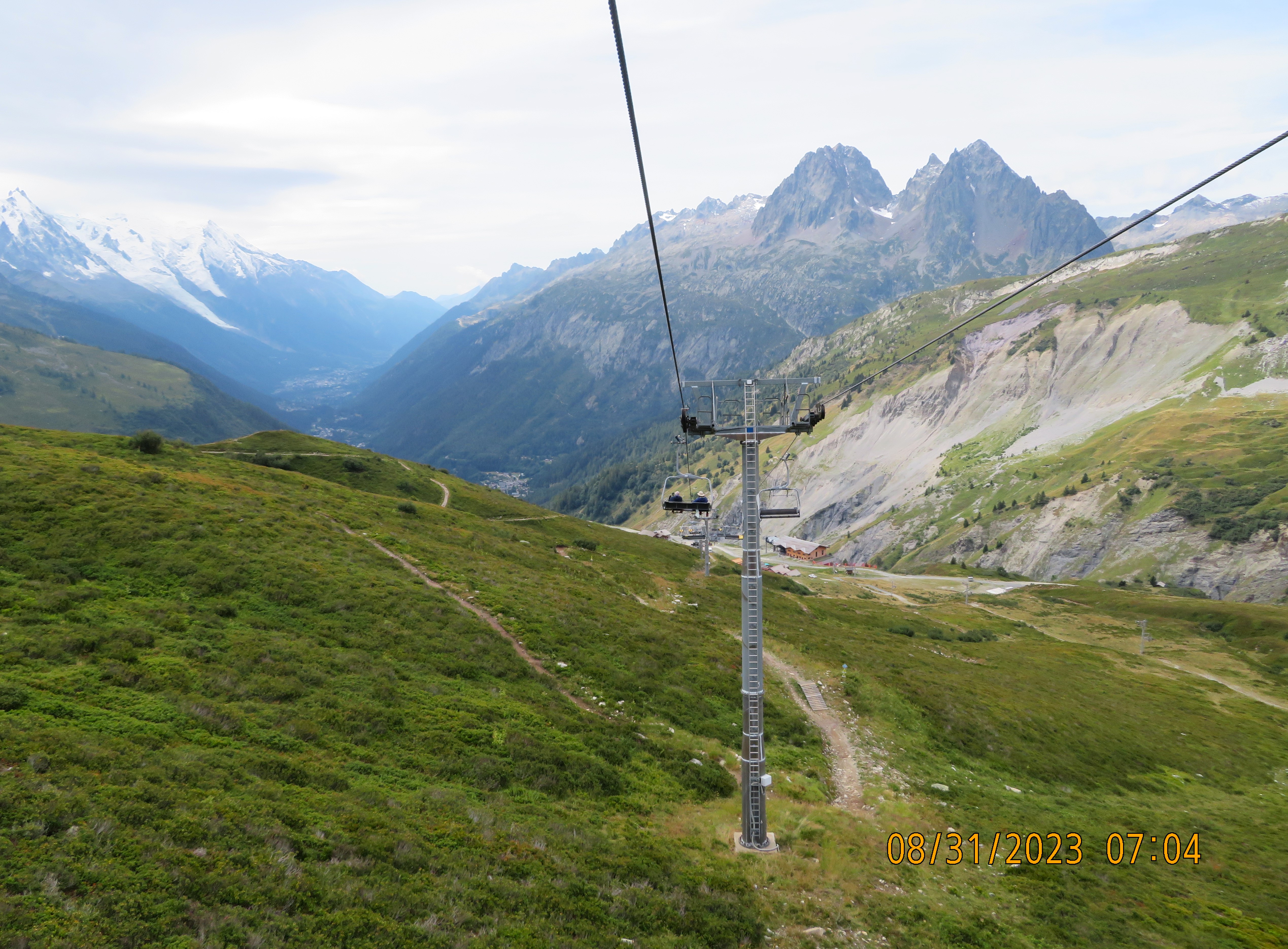 Now – knowing that the next day was our last day and we were going to be walking along a pretty fabulous balcony path that parallels the Mont Blanc massif, I decided to not finish the day’s trek and took a chair lift down the mountain to the town of Argentiere, our stop for the night. I knew there was going to be a big descent and I just decided to rest up for the last day. So Stephanie, Kareem and I took a ski lift down, hopped on a bus and hopped off five stops later at our hotel.