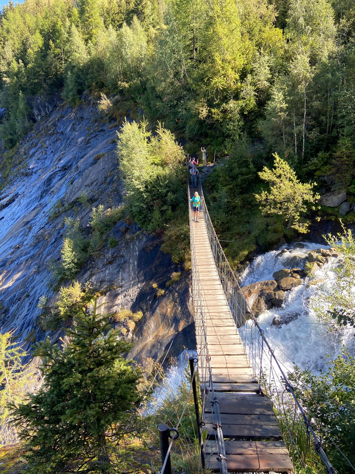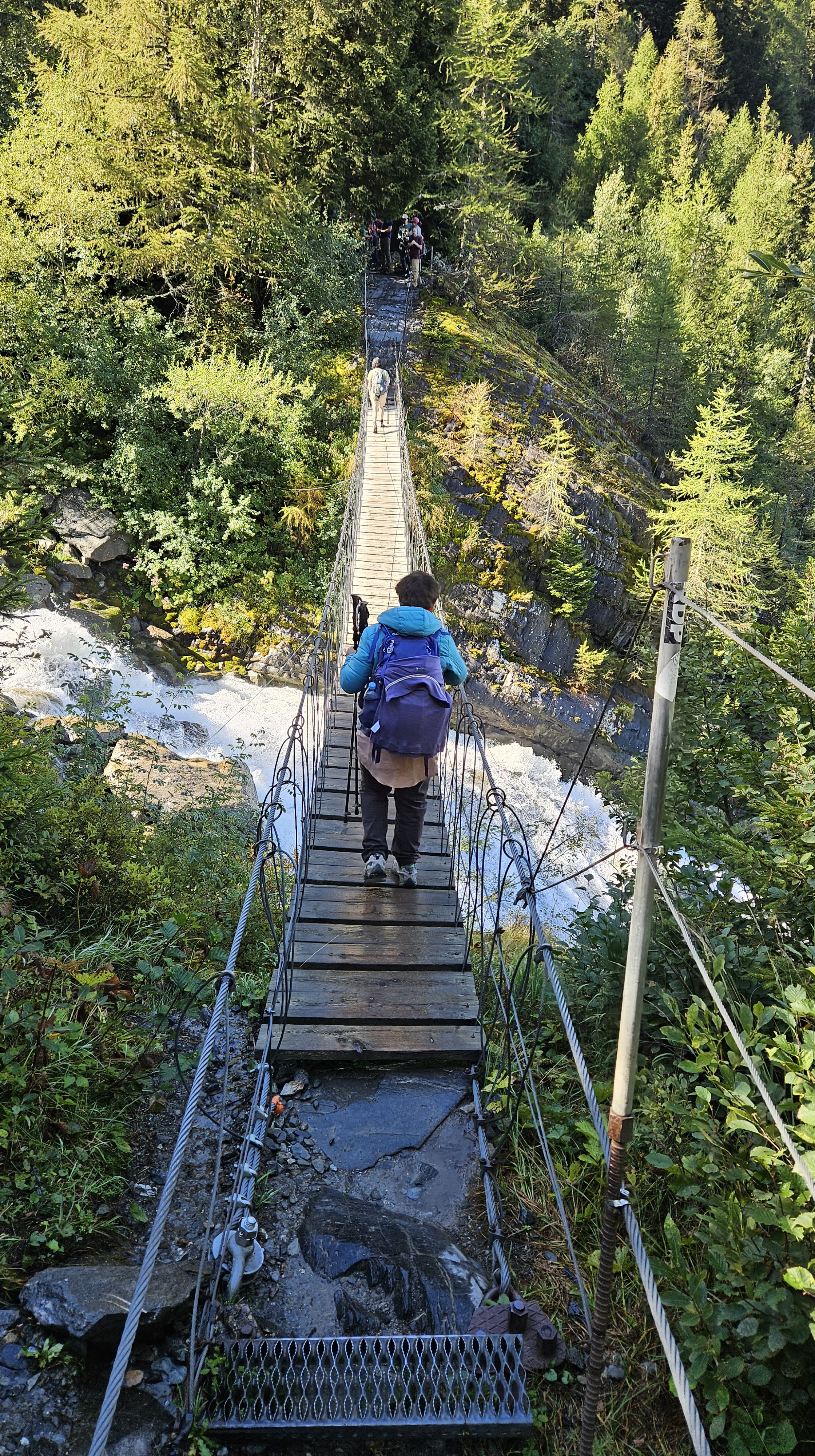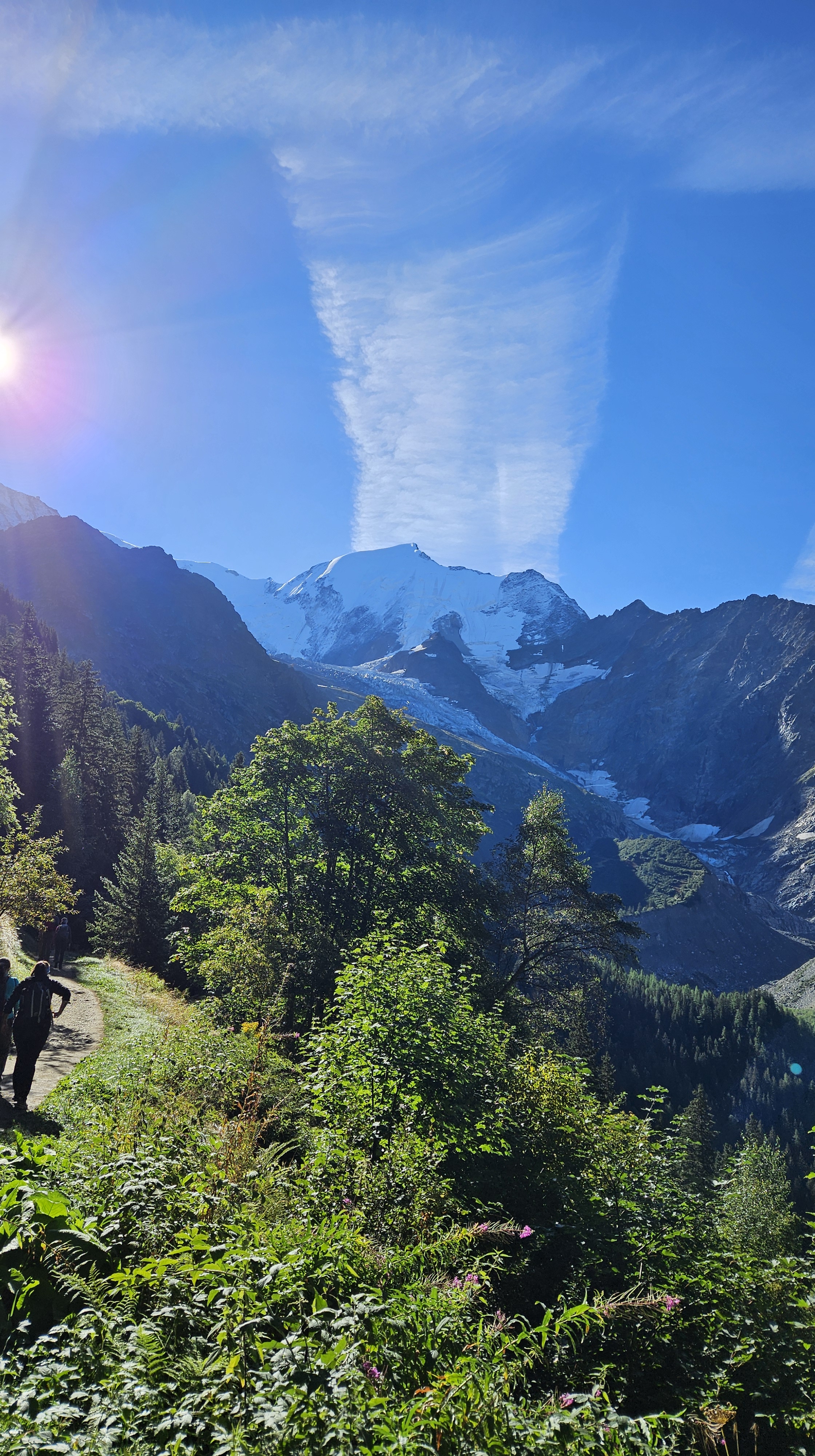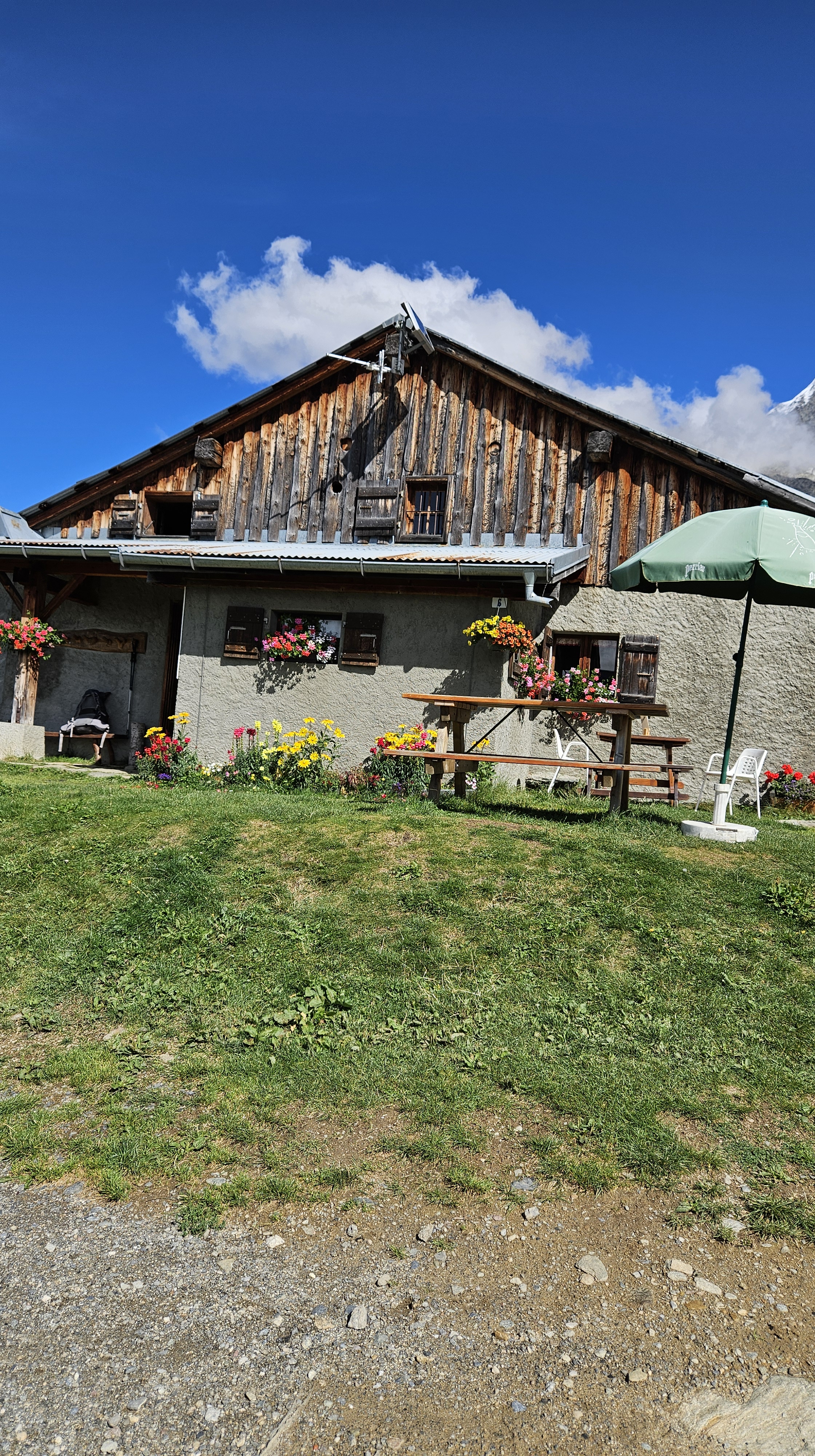 Itinerary for the day was an eight-mile trek, which included two big climbs. But part of it was also a stop on a ridge, the Col de Tricot, offering a pretty damn stupendous 360-degree view of the valley. From there, it was a steep, tricky descent down to the Refuge de Miage, famous for its blueberry pie. And then, you know, another climb and whatnot.