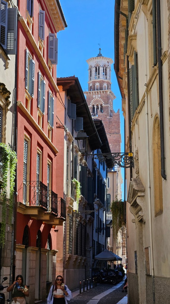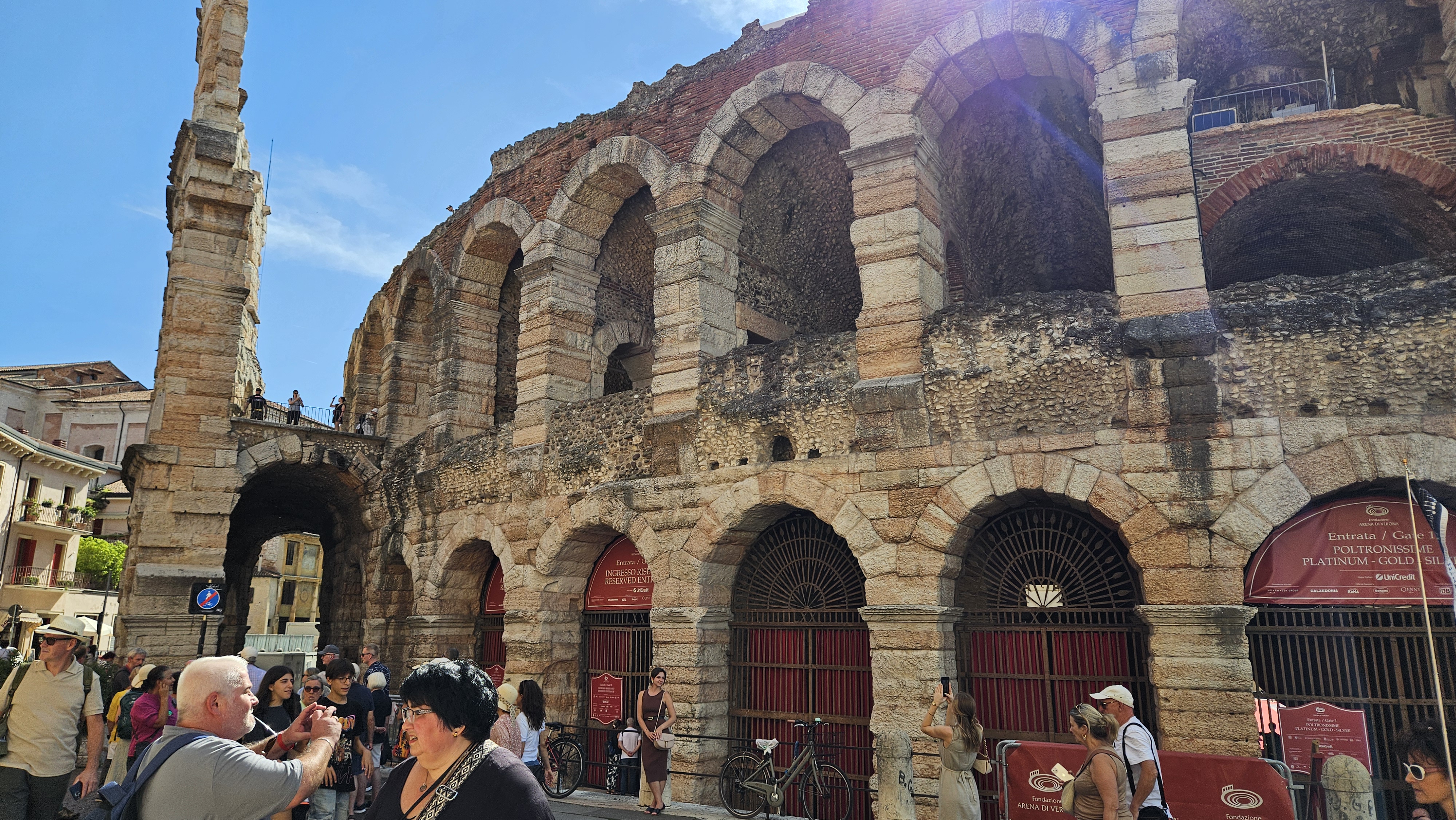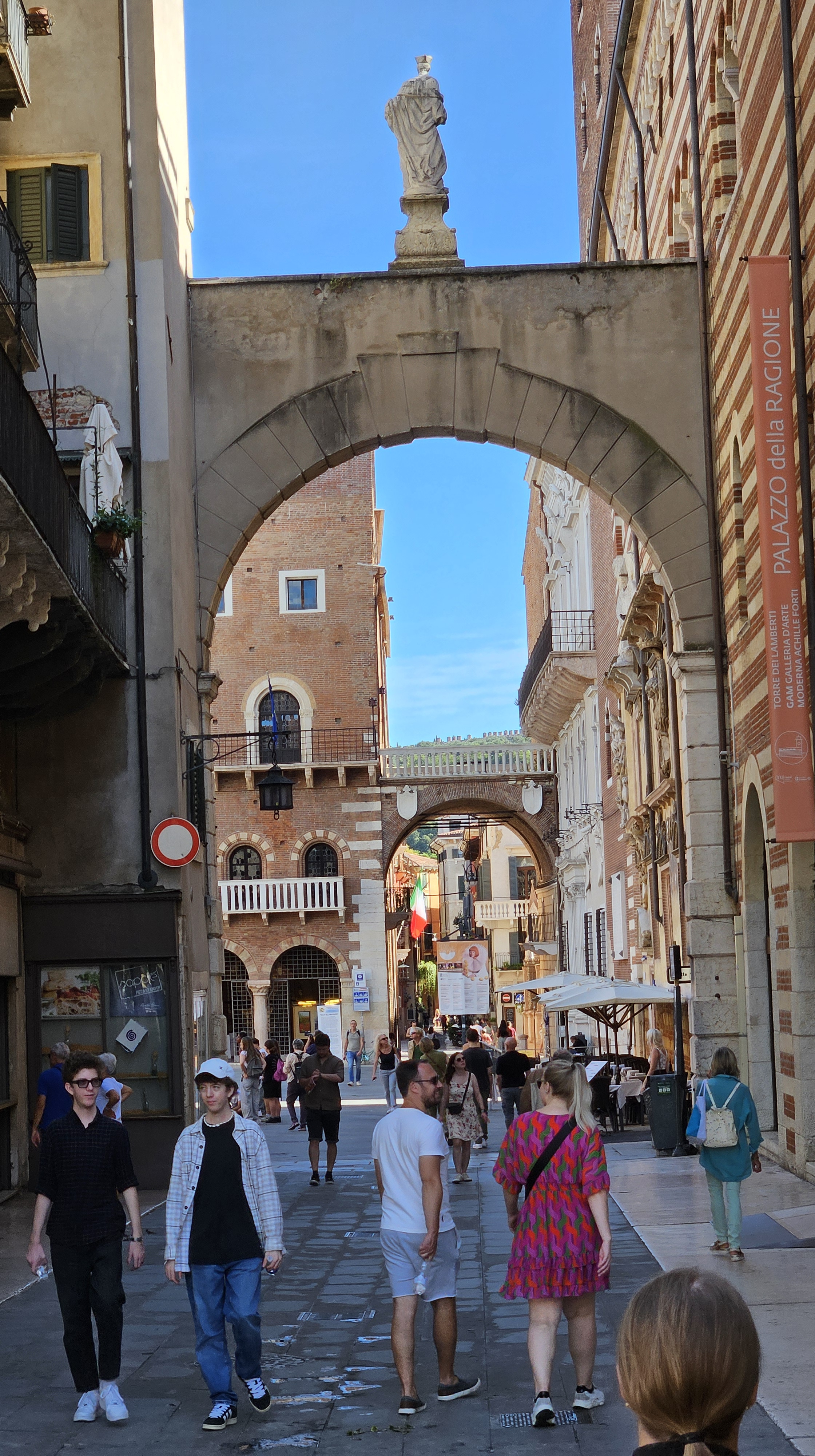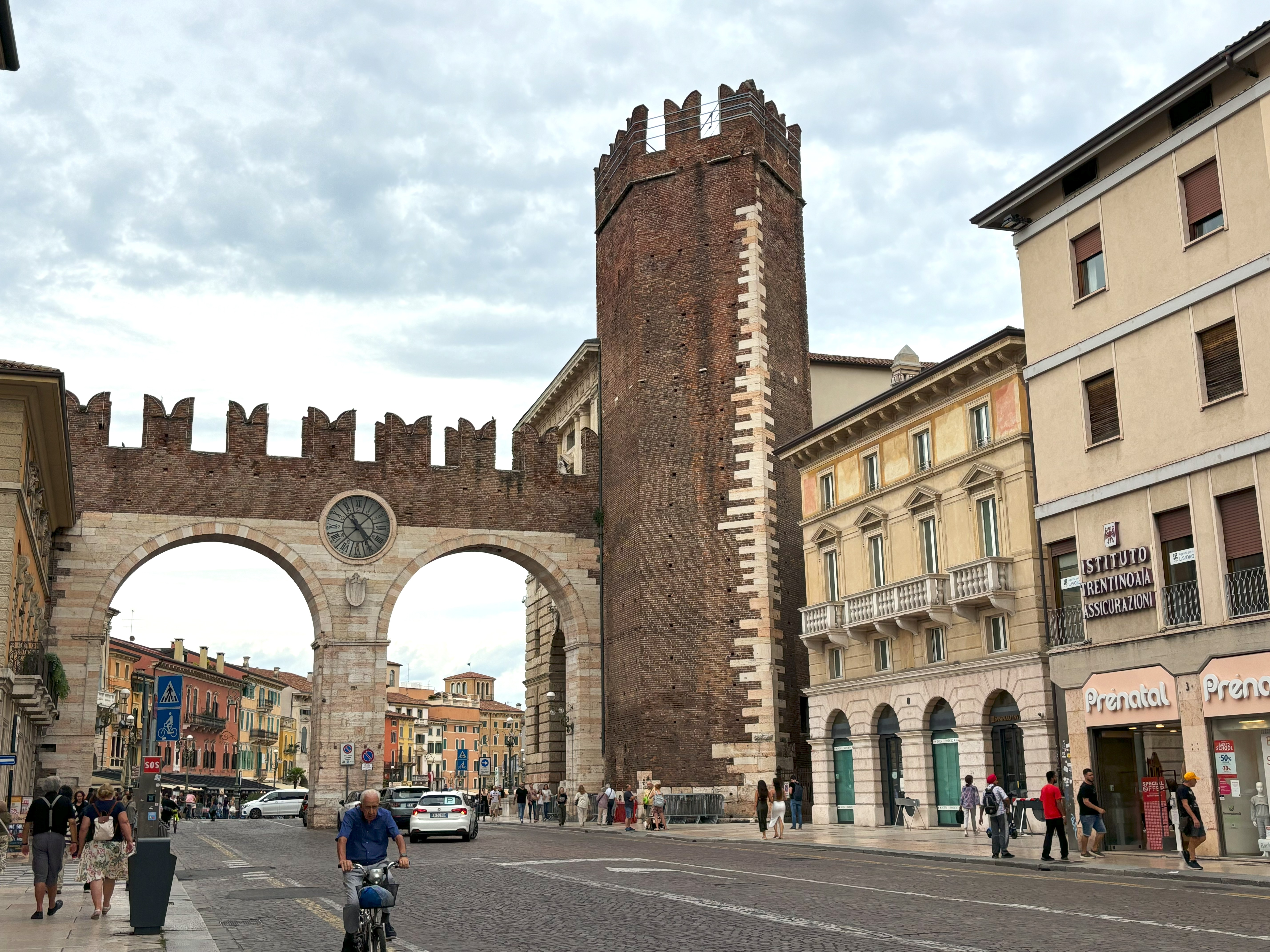 I arrived in fair Verona after an adventurous week hiking around Mont Blanc. No more days of climbs and descents amid stunning scenery. Now my scenery, while still stunning, was fountains, piazzas, castles, archways and bell towers. Verona has been called a mini-Rome for good reason: arches, columns, spires, gateways and, of course, the arena all reflect Roman influences.