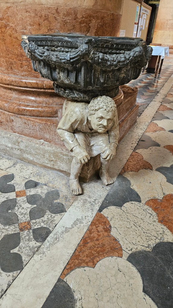 From there, we bought a ticket for admission to four churches. We started with Basilica of Sant’ Anastasia, where I discovered hunchbacks that hold up holy water basins.