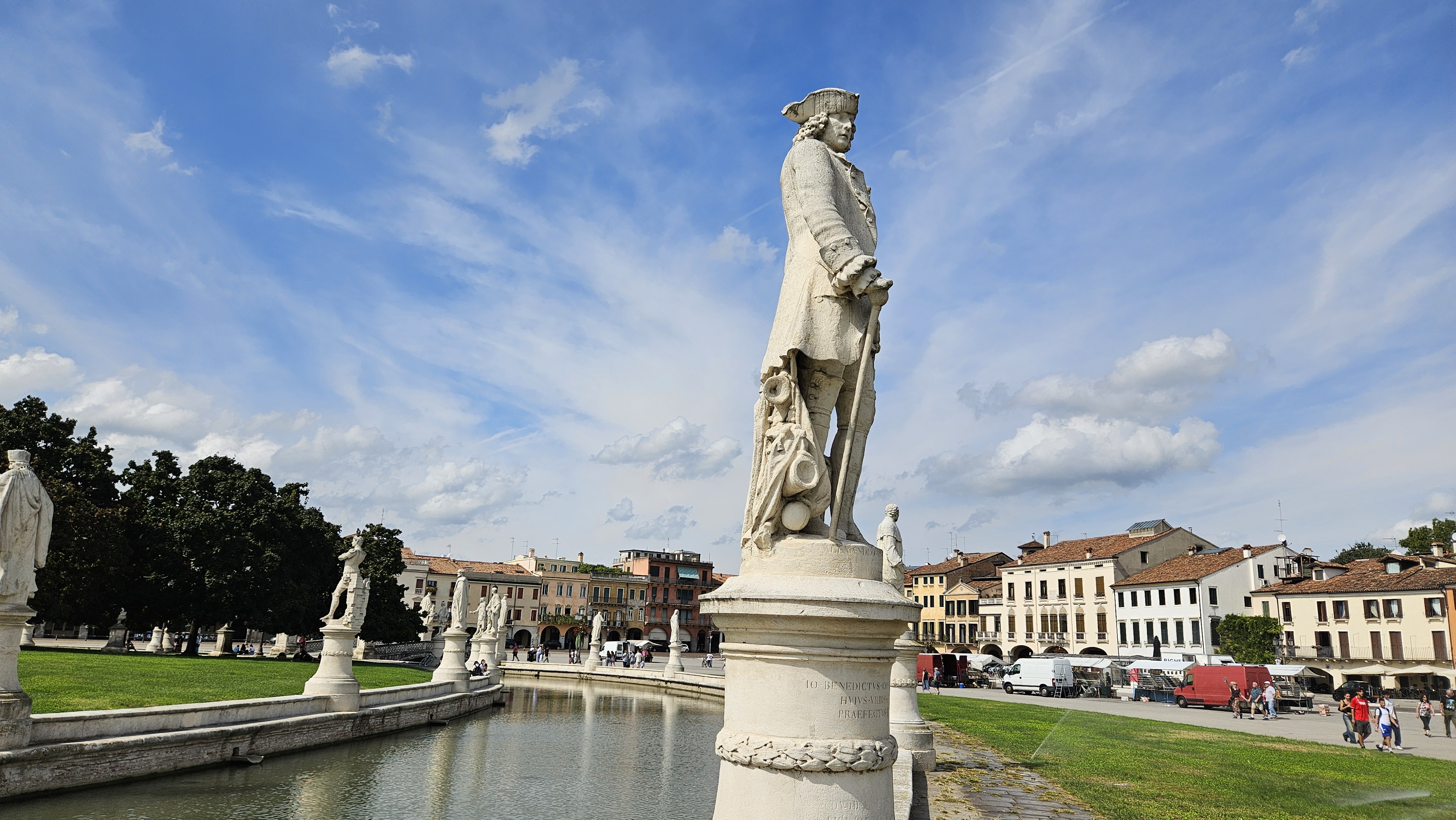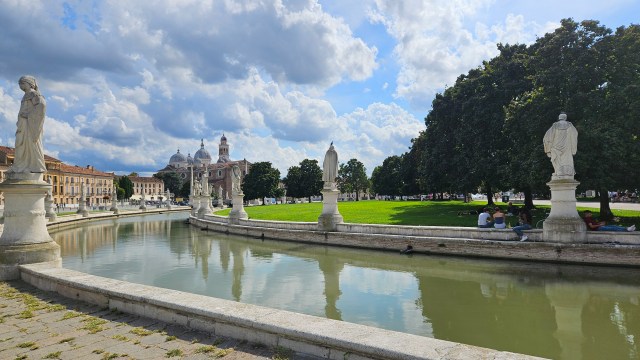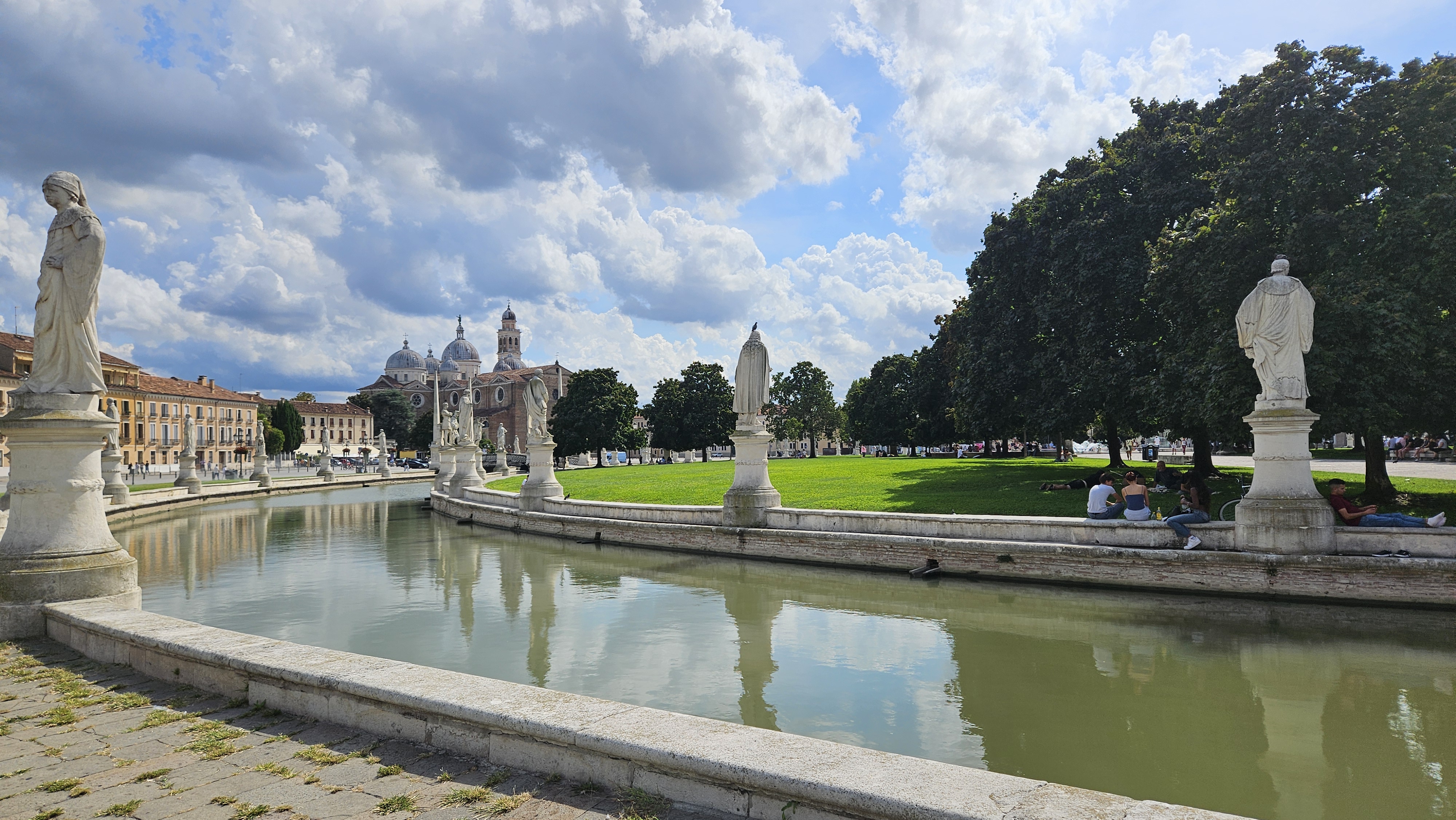 We decided to go to Padua (Padova in Italian) because neither of us have been there before. Padua is a big college town. We walked straight up the main street, lined with cafes and restaurants full of university students. Want to feel old? Hang out here. That street ends in Padua’s grand “Prato delle Valle,” a large piazza with a canal and a grassy island. I’ve not seen anything like it in any other city in Italy. We ate lunch at a place right on the Prato.