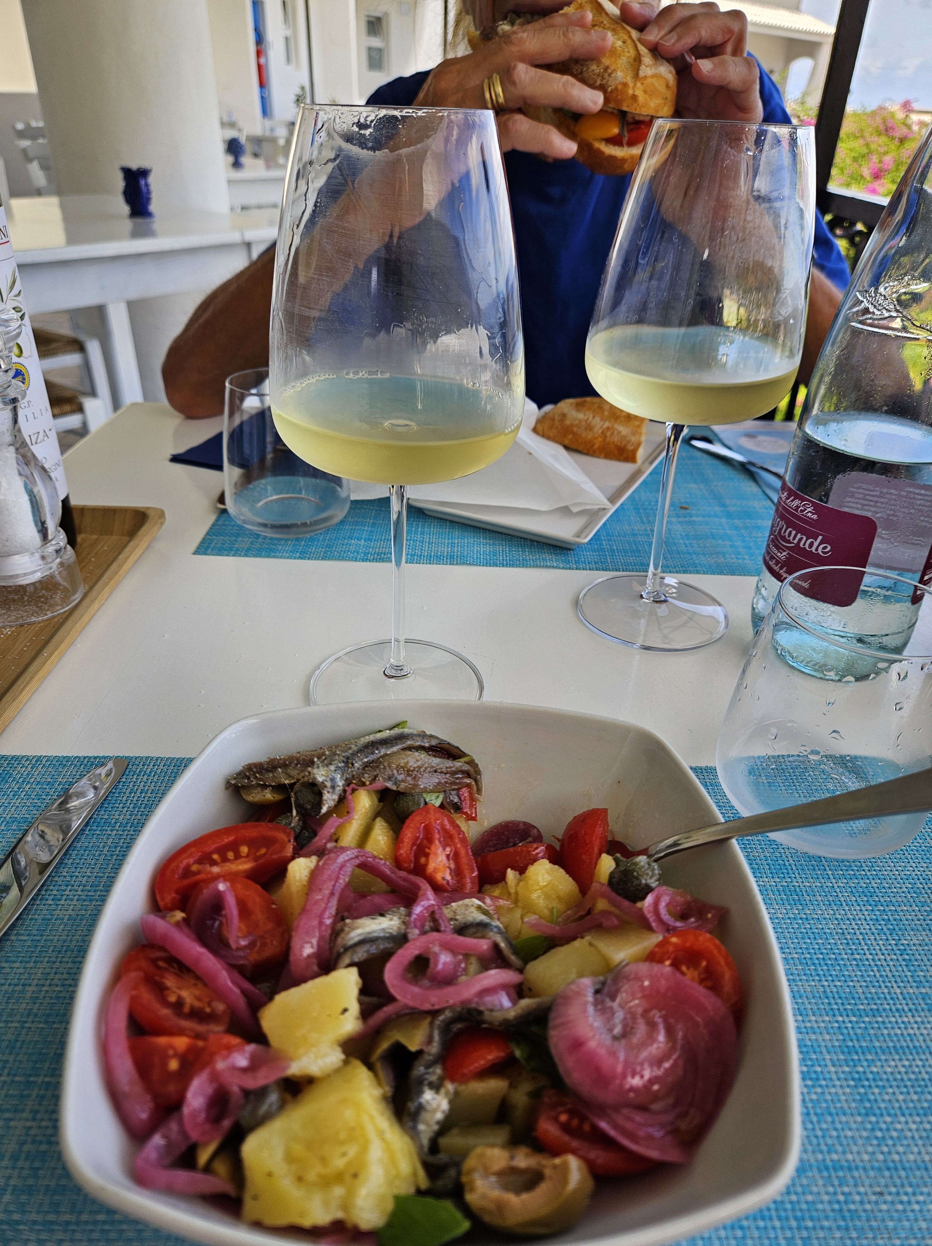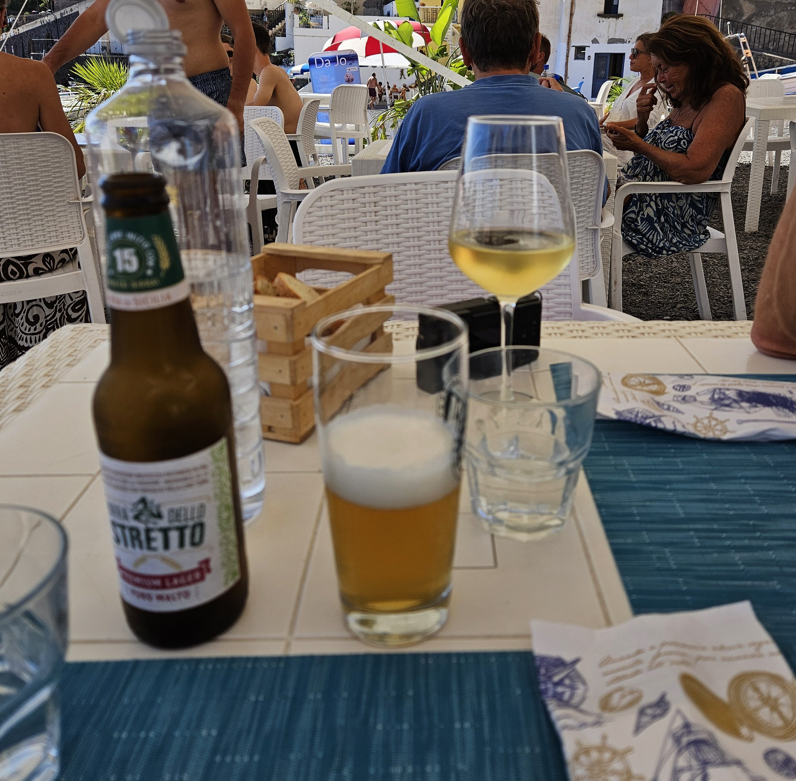 For our last night, we ate dinner at one of the more popular restaurants in town, ate some delicious fish and toasted our wonderful stay with some crisp, cool Salina white wine.