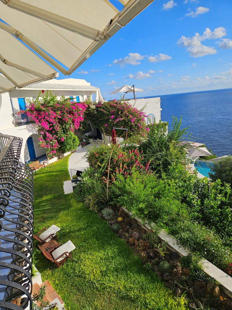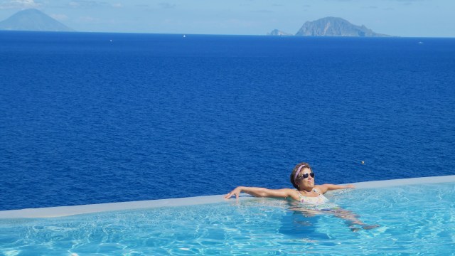 Finally, we arrived and then it hit me. The sea, the trees, the homes on the hillside, the scooters – it was unreal and fantastic, like an island movie set. The hotel – Hotel Punta Scario – was exquisite and had an infinity pool where it looks like it’s about to fall over into the sea. I checked in, found Paola at the pool and gave her a big “Ciao!”