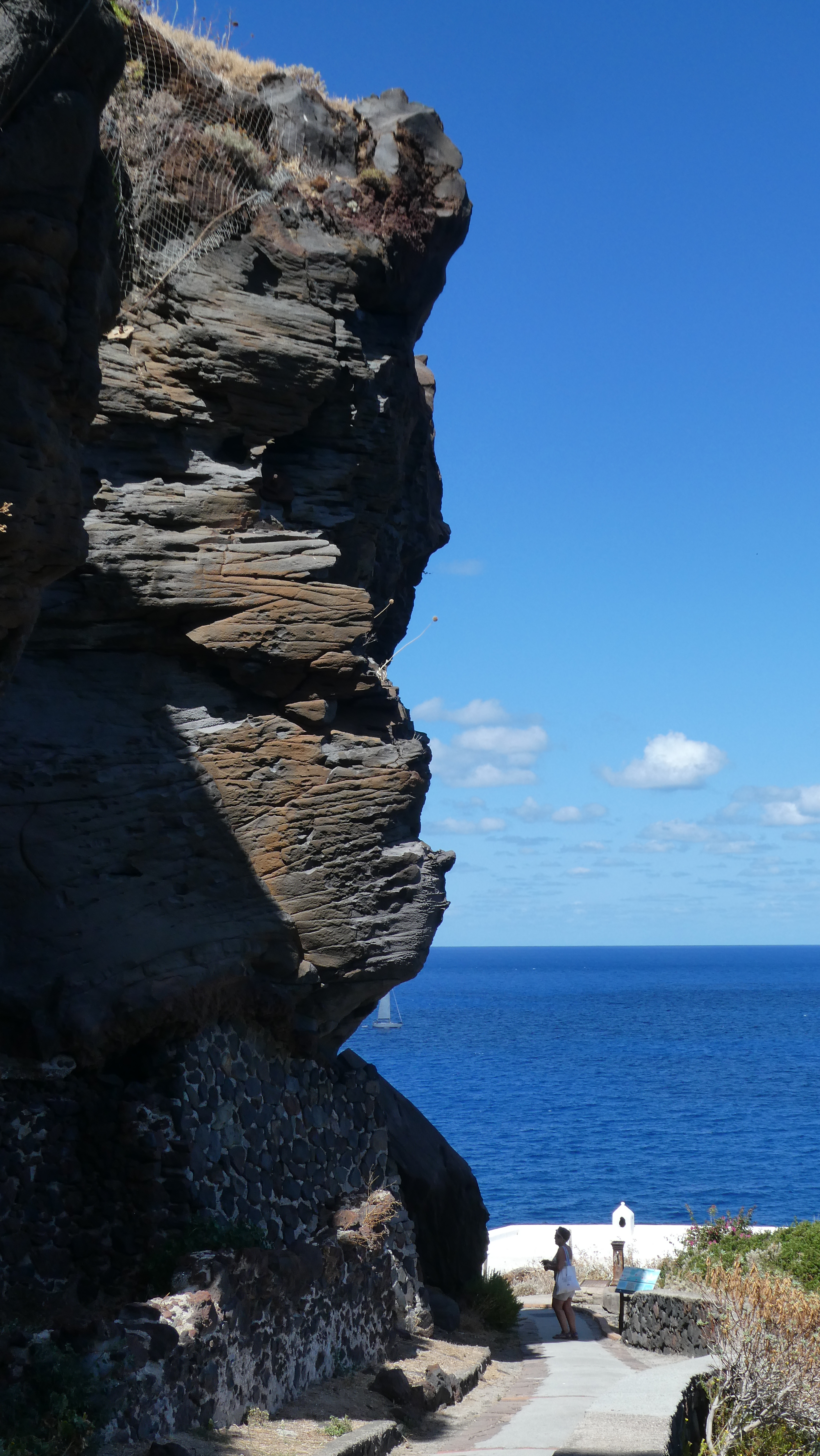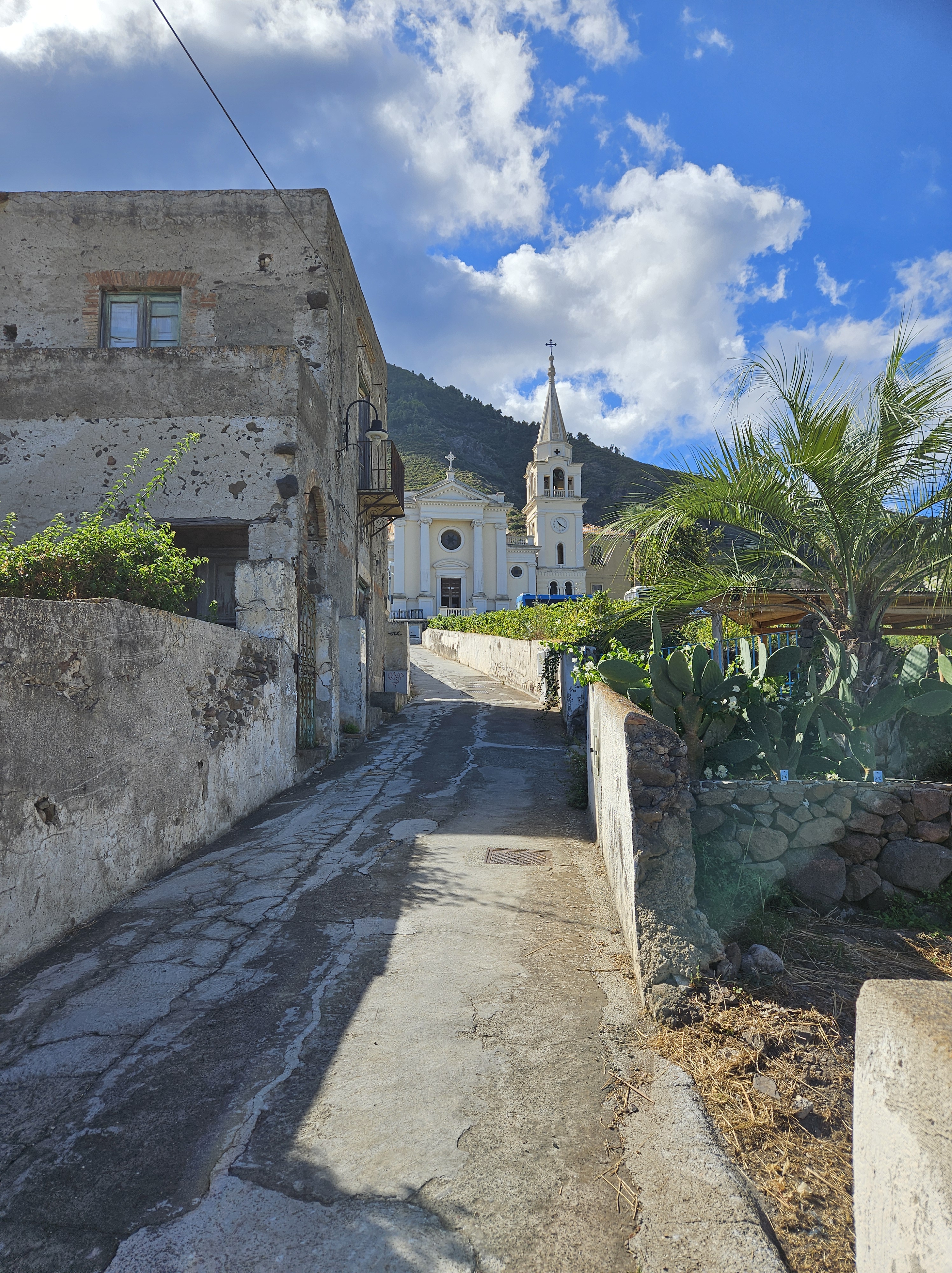 The next day we decided to explore the island via the hiking trail to Monte Fossa delle Felci, the island’s highest point. I seemed to have misunderstood when the hotel people explained that this was a “leggero” hike, meaning not too difficult. We had to get to a place called Val di Chiesa, or the church valley, and the trail started behind the church. We walked up to town and then up another level of town to catch the bus to take us there. We missed it by ten minutes and the next one didn’t arrive for another hour. We decided to walk.