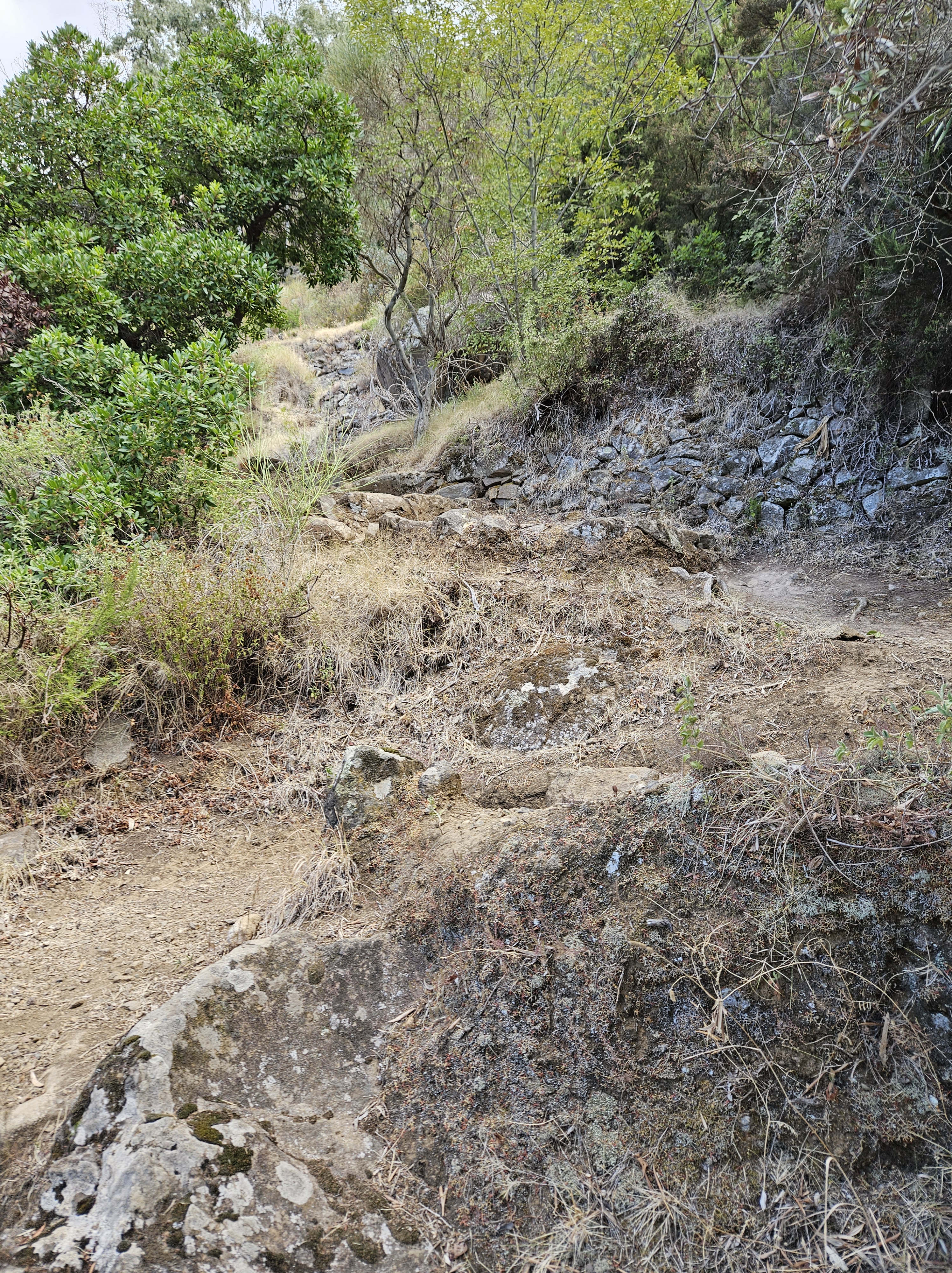 So we started the the climb. It was steep. We went up about 700 meters on craggy rocks. The views of the sea as we went eased the grind. At one point, there was a sign for a refugio which is a place to stop, refuel and rest. (Yes!) What the sign didn’t say was that it was a refugio from the 1800s and it was just a relic to be admired.
