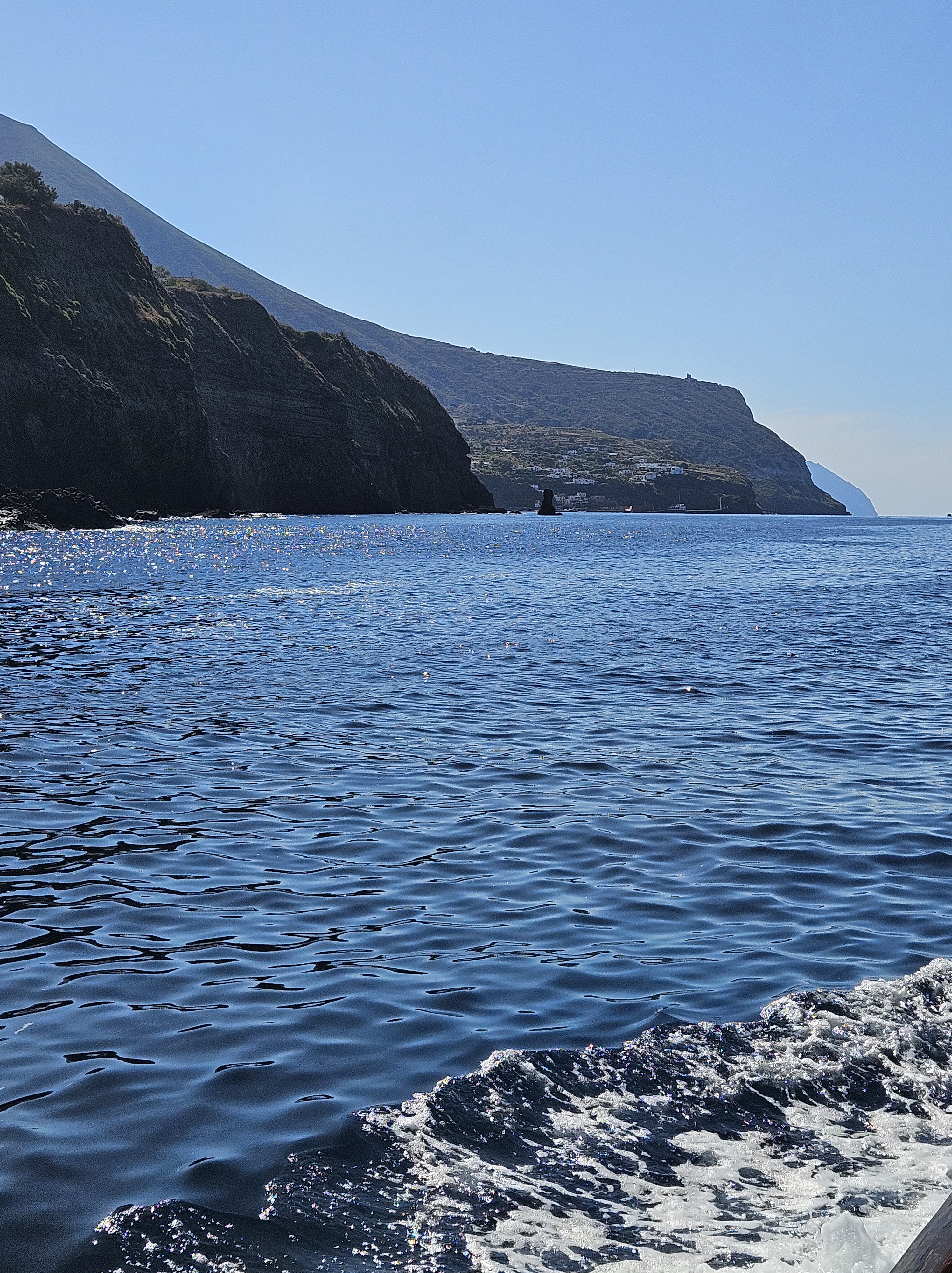 At Milazzo, a busy port town, I went to the boat ticket office to change my ticket and get on the earlier ferry. It was a breeze and no one yelled at me. Now the adrenaline was really kicking in. I got on the hydrofoil boat with rows of seats below deck and planted myself by a window. Salina is the third stop, after the islands of Lipari and Stromboli. Good thing I don’t get seasick. It was speedy ride, up and down, sea spray on the windows. And I was pumped up anyway on a few espressos I’d had in the past three hours.